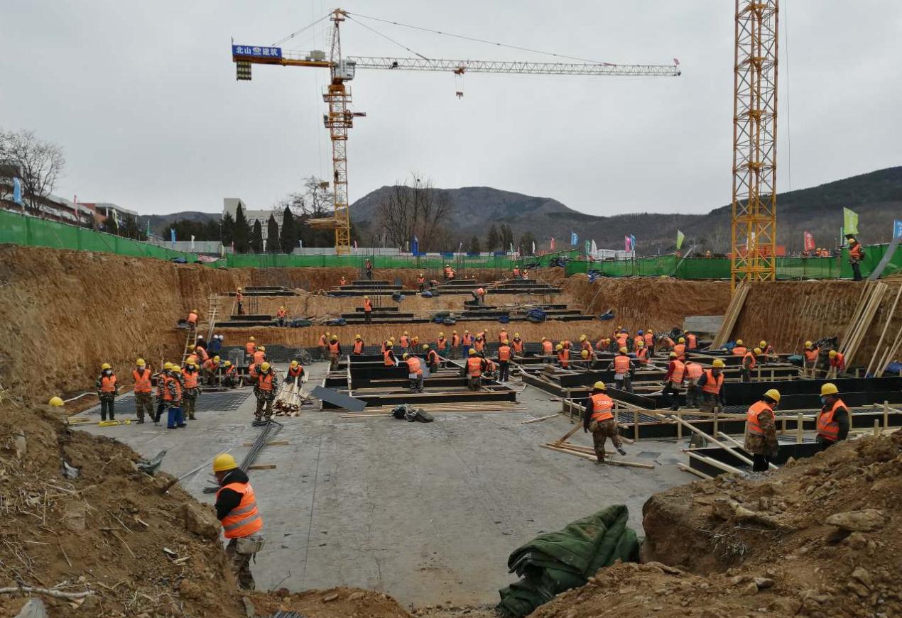 在建筑工地上,数百名建筑工人在争分夺秒加紧工期建设医院,几台大型设备正在齐头并进的运作。记得施工最紧张时期,大雪纷飞的深夜里,集团董事长亲临现场查看施工情况,给员工带来了问候,让所有参建人员心里感到无比的温暖,为大家带来了希望之光。项目管理人员干劲十足,加班加点、时时刻刻把关项目施工安全、质量,他们以惊人的“紫光速度”来完成建设;他们抢的不是工期,而是生命;他们超负荷的工作不只是为了个人的小家,更是为了紫光的大家;他们用实际行动将“紫光品牌,中国工匠”精神展现的淋漓尽致!