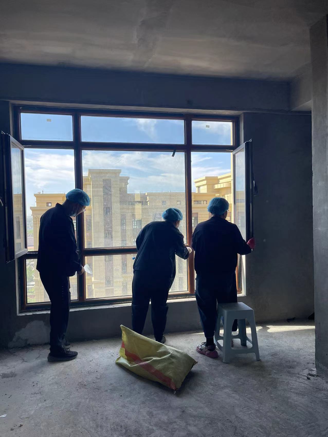 在公司领导的带领下,大家干劲十足,分工合作,公司人员负责清扫32#,一、四项目部负责清扫30#,三、五项目部负责清扫29#,有的撕掉门窗多余的保护膜,有的清扫地面的尘土,有的用铲子清理泥土块。虽然尘土飞扬,但大家仍不怕脏、不怕累。项目部清扫完毕后,纷纷帮助公司人员清扫。大家相互配合团结一心,一家家、一户户都焕然一新。